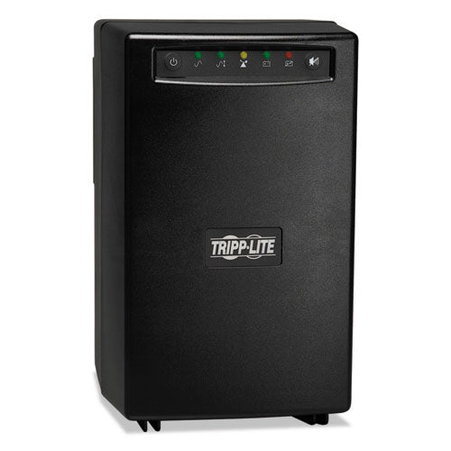 Battery backup system is ideal for supporting a variety of computer, internetworking, telecom and consumer electronics equipment. USB port enables unattended shutdown without data loss during extended power failures. Automatic Voltage Regulation circuits correct brownouts without using battery power. Battery-supported outlets are for use with computer, monitor and one vital system peripheral; the additional surge suppression-only outlets are designed for printers and other system accessories not requiring battery backup. Dataline suppression jacks protect modem, fax machine, cordless phone or other peripheral with a standard dialup or DSL phone connection. Audible alarm and front panel LEDs indicate UPS system and line power status. Protection Type: DSL; Ethernet; Fax; Modem; Phone; Power; System VA: 1500 VA; Backup Time at Half Load: 13 minutes @ 470 Watts; Lines: 1.
