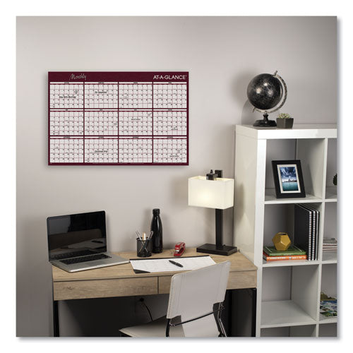Reversible: 12-month view in Burgundy or Navy Blue design. Write-on/wipe-off surface. Wet-erase marker(s) included. Size: 48 x 32; Page Color/Theme: White/Blue; White/Burgundy; Edition Year: 2021; Calendar Term: 12-Month (Jan-Dec).