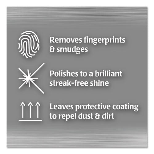 Cleanser is specially formulated for stainless steel surfaces. It is excellent for removing dirt, residue, fingerprints, water spots, and more. It provides a brilliant, streak-free shine without any hard rubbing. In addition to cleaning and polishing, it protects your stainless steel by leaving a shiny, protective barrier that resists fingerprints and repels dust and dirt. Recommended for all stainless steel, including large appliances like refrigerators, dishwashers, ovens, and stoves as well as the exteriors of smaller appliances such as microwaves, toasters and coffeemakers. Also excellent for stainless steel countertops, outdoor stainless steel kitchen elements and BBQ grills. Application: Stainless Steel Appliances; BBQ Grills; Applicable Material: Stainless Steel; Dirt Types: Fingerprints; Water Spots; Dust; Dirt; Physical Form: Aerosol.