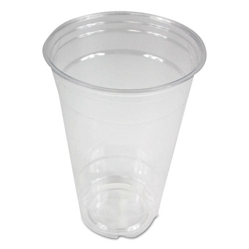 The ideal option for cold drinks, this high-quality PET plastic cup provides an upscale feel at an economical price. The exceptional clarity of this plastic provides a great option to showcase your favorite snacks as well whether on the shelf or in a refrigerated section. Cup Type: Cold; Capacity (Volume): 20 oz; Material(s): PET; Color(s): Clear.