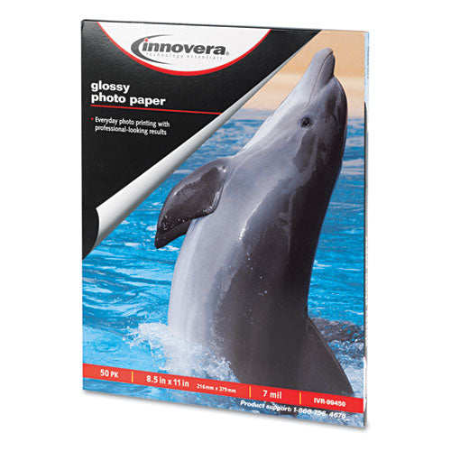 Glossy Photo Paper, 7 Mil, 8.5 X 11, Glossy White, 50-pack