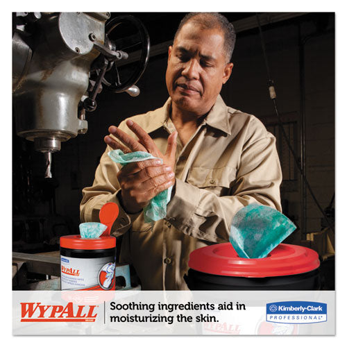 WypAll Waterless Industrial Cleaning Wipes are the ideal pre-saturated cleaner for on-the-go cleaning of hands, tools, parts and non-porous work surfaces. The alcohol-free natural citrus solvents cut through grease, grime and oil, while soothing ingredients moisturize the skin. The specially designed cleaning fabric incorporates a textured surface on one side to increase scrubbing action for more thorough cleaning (even a tool with grime caked on), while being thin and flexible enough to get into tight spaces. The other side features a smooth surface, which wipes away dirt from your hand or a work surface. The middle absorbent layer soaks up and holds the dirt. These wipers are truly a must-have for any dirty job and cleaning on the go. When effectiveness and value top your list of criteria, you can trust WypAll to deliver. Canister. Towel/Wipe Type: Cleaner/Detergent Wet Wipe; Application: Hand Washing; Machinery; Parts; Tools; Worksurfaces; Applicable Material: Ceramics; Fiberglass; Finished/Sealed Wood; Laminates; Metal; Plastic; Skin; Vinyl; Material(s): Cellulose.