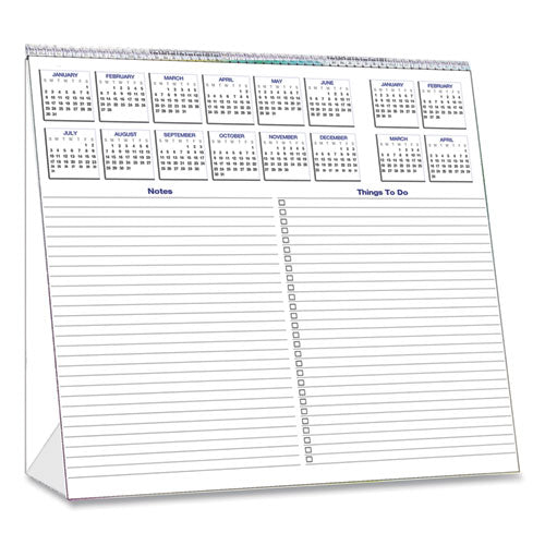 This House of Doolittle 100% Recycled Cosmos Desktop Tent Calendar features 12 months, January to December for easy planning. Every three months the colorful star design changes. The calendar stands on any desk on its own with strong 90% recycled wire binding that firmly keeps the pages together. A perfect calendar when desk space is limited. House of Doolittle products use 100% recycled paper with soy-based inks. Size: 6 x 6; Page Color/Theme: Cosmos; Edition Year: 2022; Calendar Term: 12-Month (Jan-Dec).