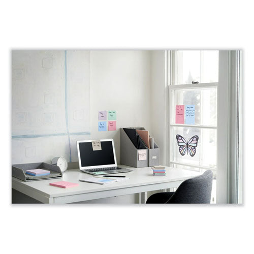 100% Recycled Paper Super Sticky Notes, 3" X 3", Wanderlust Pastels, 70 Sheets/pad, 12 Pads/pack