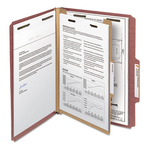 100% Recycled Pressboard Classification Folders, 1 Divider, Letter Size, Red, 10-box