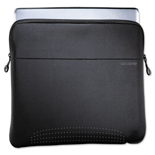 Constructed of high quality neoprene, this checkpoint friendly sleeve allows laptop to remain protected through airport security. Sleeve zips around three sides so that it can be used in a horizontal briefcase or a vertical bag like a backpack. Fits Laptops Up to 15.6". For Use With: Laptops; Color(s): Black; Color Family: Black; Material(s): Neoprene.
