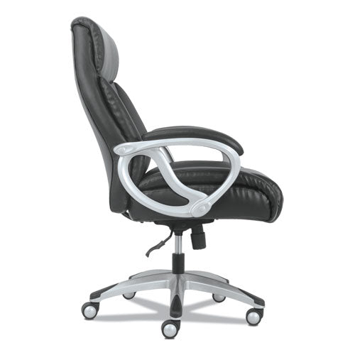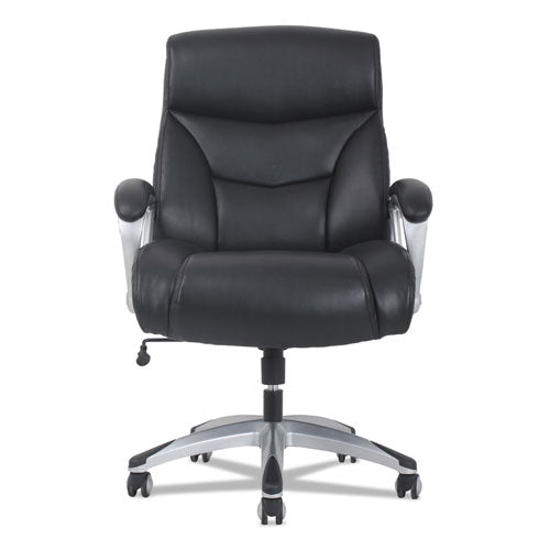 Classic black leather and a silver frame make the Sadie 3-Forty-One big and tall chair perfect for executive spaces. Customize your comfort with an adjustable tilt lock and seat height. Fixed padded arms provide valuable upper body support, and 360-degree swivel enable total freedom of movement. Recommended Applications: General Office & Task; Seat Color: Black; Back Color: Black; Color Family: Black.