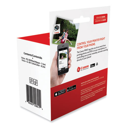 The PG-260 Black Ink Cartridge produces crisp, sharp black text for all your documents while the CL-261 Color Ink Cartridge produces colorful photos and images. Combined with Canon photo paper it protects your photos with the ChromaLife100 system for beautiful, long lasting photos.