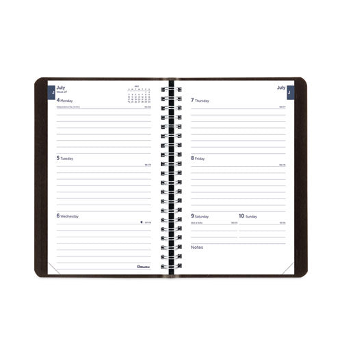 This Academic Weekly/Monthly Planner has you covered for 13 months, July to July. Twin-wire binding with soft Vicuana cover. Week-to-View format with week on two pages. Monthly planner before each month. Current month and notes section on each spread. Includes contact pages, four-color stickers for visual reminders, map of North America, metric conversions, multiplication table, periodic table, three-year calendar, and yearly planner. Tear-off corners.
