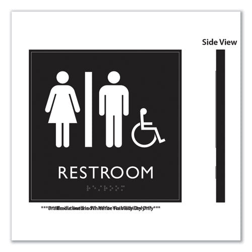 Ada Sign, Unisex Accessible Restroom, Plastic, 8 X 8, Clear/white