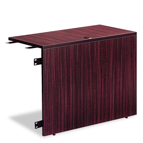 Universal application as either a return or bridge. 1'' thick worksurface and side panels are water-, scratch- and dent-resistant. Full-height modesty panel. Adapts to right- or left-handed configurations. Fitted with one wire management grommet for increased organization and safety. Protective 3mm edge banding. Return Orientation: Reversible; Color: Mahogany; Color Family: Mahogany; Overall Width: 42".