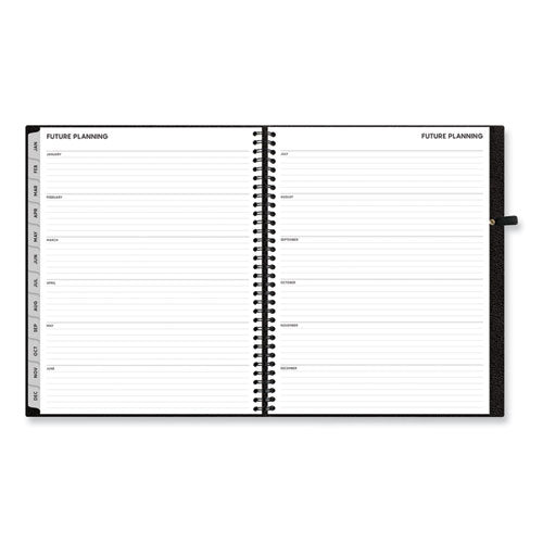 For clean layouts and a simplified design, choose Aligned™. Tabbed monthly spreads feature a standard daily block format with a lined notes section to help you prioritize your "Important This Month" items, and six past-year monthly spreads make annual transitions easy. Vertical-format, two-page per week spreads feature plenty of space for all of your appointments, even on the busiest day; and on the far right, it features an extra-large area for any special notes you might need to make throughout the week. In the back of the book, you’ll find future planning guides and worksheets as well as a wide variety of other resources. Heavyweight cover provides premium durability that stands up to everyday wear and tear, and its classic, professional color palette, with touches of silver foil and semi-concealed twin-wire binding, deliver a sophisticated look that makes a professional impression. With this book, you're ready to conquer your day, your week, your month... your whole year.