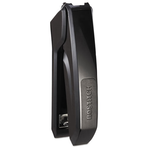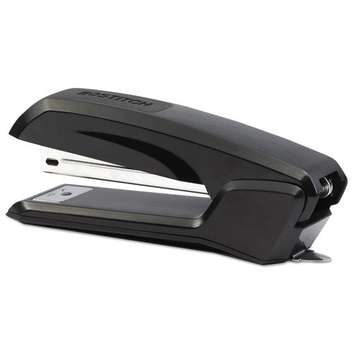 Sleek, modern aesthetics without sacrificing performance and reliability. Full-strip stapler with antimicrobial product protection is conveniently designed with a staple remover on the back of the unit, and a hidden StapleStore™ compartment in the base for extra staple strips. The smooth finish and curved ergonomic silhouette provide a comfortable stapling experience. Opens 180° for bulletin board tacking and crafting. High Capacity Stapling: No; Flat Clinch Plate: No; Tacking: Yes; Staple Capacity: Full Strip (210 Staples).