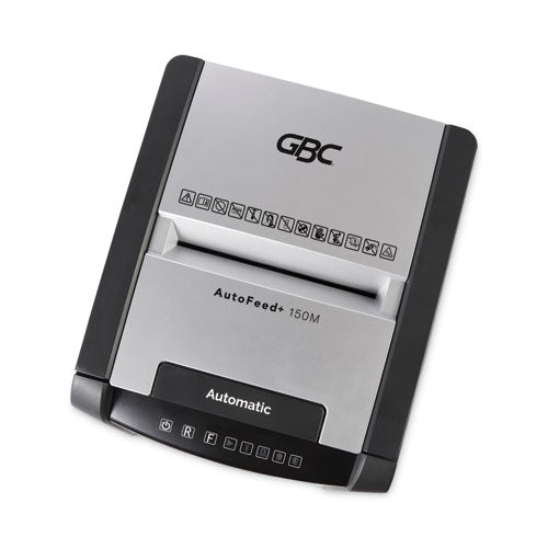 Get rid of personal or confidential documents at home with the GBC AutoFeed+ Shredder. Stack up to 150 sheets in the feeder for automatic shredding or manually feed up to six sheets at once. Micro-cut (P-5) shred style safely shreds confidential or sensitive documents. Runs ultra-quietly to help minimize noisy disruptions in your home office. Powerful induction motor with 30-minute continuous run time and huge 11.6 gal bin let you shred longer without stopping. Auto forward and reverse functions help prevent jams. Auto shreds documents, paper clips and staples, while credit cards must be manually inserted.