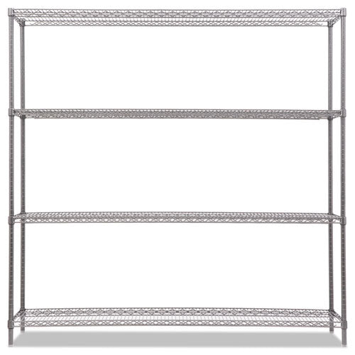Universal storage solution ideal for industrial, foodservice and medical and all other storage needs. Long-lasting industrial grade finish resists corrosion in even the harshest environment, wet or dry. Heavy-duty shelves withstand constant re-stocking. Can be used in freezer applications and with an open design that allows for air circulation. Snap-together design assembles in minutes without tools. Can be set up as a four-tier single rack or as two two-tier racks to meet specific needs. NSF certified for wet and dry usage. Color: Black Anthracite Plus; Overall Width: 72"; Overall Depth: 18"; Overall Height: 72".