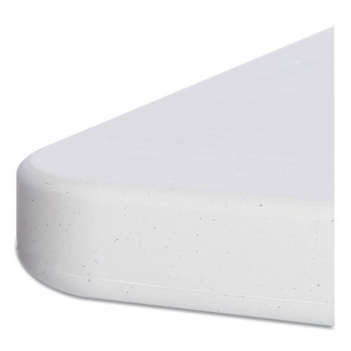 Lightweight and durable folding table for indoor and outdoor use. Legs fold into underside cavity for safe storage and easy transport. Made with blow-molded high-density polyethylene top is dent-, scratch- and water-resistant. Banquet Tables—Holds up to 600 lbs. evenly distributed. Square edge. Top Color: Platinum; Color Family: Gray; Base Color: Charcoal; Top Shape: Rectangular.