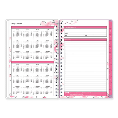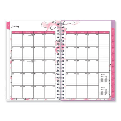 Breast Cancer Awareness Planner offers weekly and monthly calendar views with ample writing space that allow for detailed scheduling and planning, however broadly or narrowly you choose, and six bonus past-month spreads enable easy yearly transitions. Two-page per week spreads feature ruled daily entries with additional weekly To Do and Notes sections. Two-page per month spreads feature ruled daily blocks, a ruled notes column, highlighted holidays, count of days-past/days-remaining as well as past and future month reference calendars. Coated monthly tabs make navigation to the proper spot easy. Create-Your-Own cover with clear overlay doubles as a storage pocket, allowing you to display photos or artwork to instantly change the look of your planner. Snag-free twin-wire binding allows the planner to lay flat when open. Thick, premium quality, acid-free pages reduce the potential for ink-bleed. Blue Sky proudly supports Breast Cancer Awareness by donating a portion of each sale of this item to Breastcancer.org.