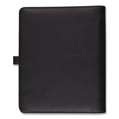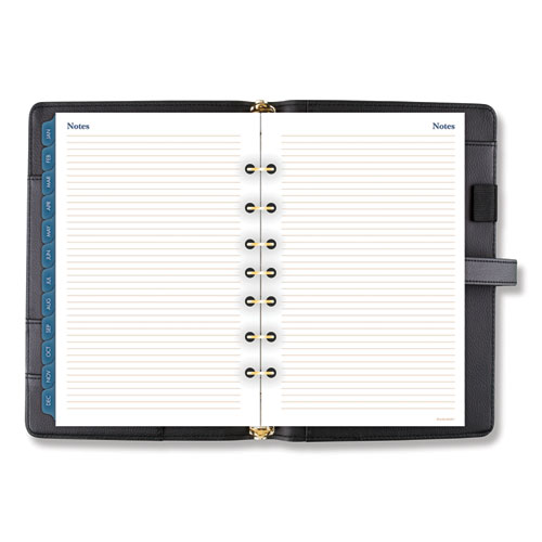 Luxurious and fashionable faux leather cover features an exterior zipper pocket and a buckle closure. Planner includes undated 12-month tab set, 16 undated weekly pages and 24 notes pages to start planning anytime. One week per two-page spread has ruled planning space with hourly appointment times from 8 a.m. to 5 p.m. One month per two-page spread has open daily blocks with a shaded area to write in the date. Each month is tabbed and future year reference calendars are displayed. Desk size starter set (size 4) with a 8.5" x 5.5" page size. Organizer cover is binder style with seven, 3/4" gold rings so pages stay secure. Starter set accessories include a zippered pouch, page marker ruler and 24-sheet note pad. Size: 8.5 x 5.5; Page Color/Theme: White; Appointment Ruling: Hourly, 8 AM to 5 PM (Mon-Fri); Calendar Term: 12-Month (Unlabeled).