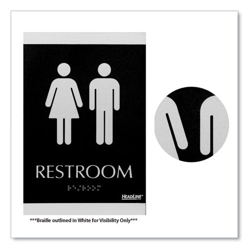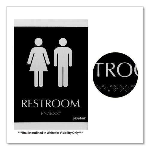 Century Series Office Sign, Men/women Restroom, 6 X 9, Black/silver