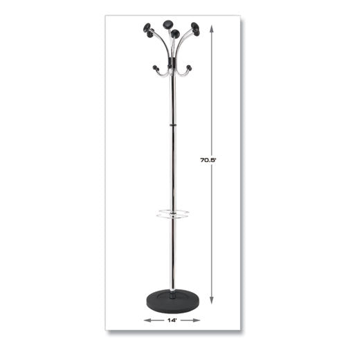 Chromy Coat Stand, 12 Knobs, 16w X 16d X 70.5h, Chrome-black