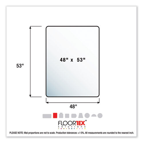 Floortex Original Polycarbonate chair mats provide the ultimate in quality, durability and clarity. Twice the impact strength of vinyl to provide a perfect easy glide ergonomic surface for caster based chairs. Polycarbonate will not curl, crack, dimple, discolor or smell under normal use. High clarity allows the beauty of flooring to shine through. Manufactured using up to 30% renewable energy. Gripper back for low/medium pile carpets up to 0.5" thick. Mat Type: Chair Mat; Application: Low/Medium Pile Carpets up to 0.5"; Width: 48"; Length: 53".
