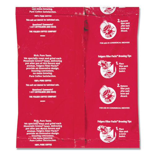 Enjoy a cup of coffee without the hassle of having to prepare it. These packs feature a pre-measured amount of coffee and filter--all in one. All you have to do is place in coffee maker and enjoy--no messy cleanup or measuring mistakes. The coffee is made from 100% mountain grown beans for the rich, smooth Folgers taste. Beverage Type: Coffee; Flavor: Special Roast; Packing Type: Packet; Capacity (Weight): 0.8.