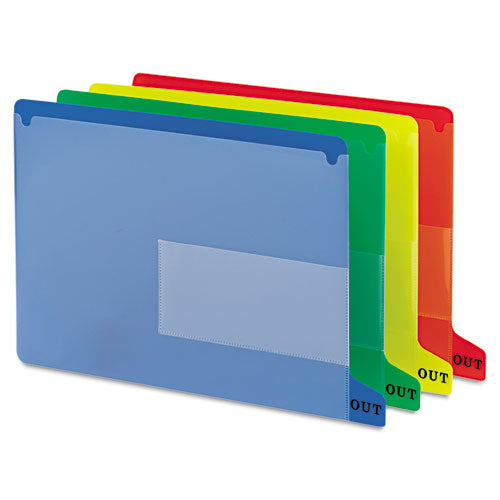 Clearly mark where folders have been removed. Small pocket holds charge-out form (sold separately). Large pocket holds documents to be filed. Bottom tab printed “OUT” on both sides. Colorful poly. Acid free, PVC free. Guide Size: 8.5 x 11; Tab Type: End Tab; Tab Cut: 1/3-Cut; Tab Position: Bottom.
