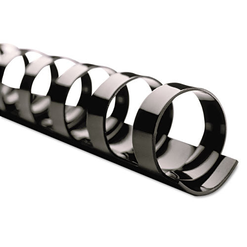 Communicate your ideas with professional polish. 19-ring plastic spines won't scratch, chip, peel or discolor. Bind 11 x 8 1/2 documents. Editing capability with a machine. Compatible with GBC and other plastic comb binding machines. To select correct diameter, measure thickness of material (including covers) and add 1/8". Sheet Capacity: 60; Spine Diameter: 3/8"; Number of Rings: 19; Color(s): Black.