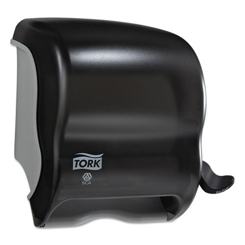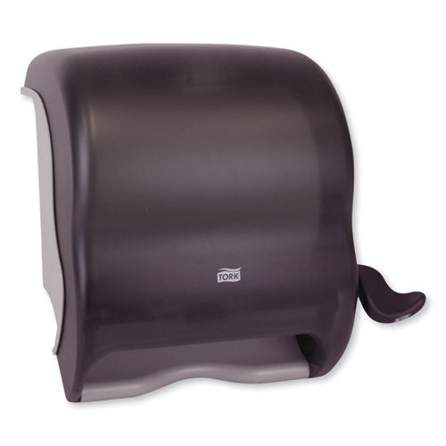 The Tork® Compact Hand Towel Roll Dispenser is a high capacity dispenser unit for hardwound paper roll towels. Includes a see-through front cover that helps reduce maintenance and allows for quick and easy service checks. Ergonomic handle designed for ease of use. Elegant appearance to compliment any décor. Made with durable impact resistant plastic. Towels Dispensers Type: Lever Roll Towel Dispenser; Capacity (text): One Roll; Material(s): Plastic; Color(s): Smoke.