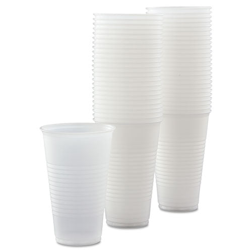 Perfect for any occasion where cold beverages are being served. Double sidewall ridges for added strength. Crack-resistant design helps avoid spills. Translucency allows for better drink identification. Cup Type: Cold; Capacity (Volume): 16 oz; Material(s): Plastic; Color(s): Translucent.