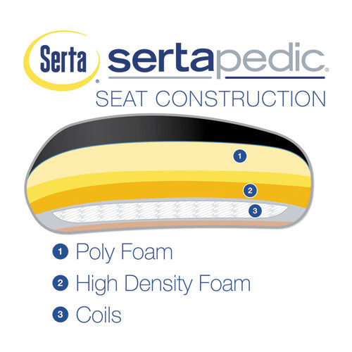 Pivot Reactive Ergonomic Support, PRESS, back health technology is a fully articulating backrest that offers continuous lumbar support at any back angle. SertaPedic® comfort support system with layers of molded foam, memory foam, and pocket coils. Upholstered in black commercial grade bonded leather. Pneumatic lift with tilt tension adjustment and lockout feature. Five-star nylon base with casters for easy mobility. Supports up to 400 lbs. Recommended Applications: Executive & Management; Seat Color: Black; Back Color: Black; Color Family: Black.