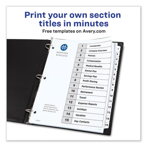 Customizable Toc Ready Index Black And White Dividers, 15-tab, Letter