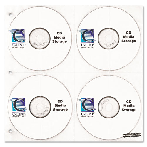 Keep your CDs safe in these ring binder storage pages. Double-sided sheets hold CDs and DVDs. Made of polypropylene, so your discs easily slide in and out and are cleaned each time. Punched to fit a standard three-ring binder or CD case (sold separately). Media Sleeve Type: Double-Sided Refill Sheet; Media Stored: CD; DVD; Capacity (text): 8; Material(s): Polypropylene.