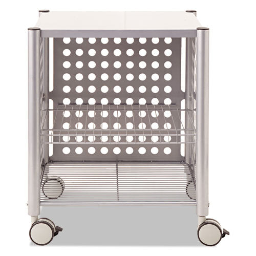 Ideal for printers, fax machines and personal copiers. Two shelves, one adjustable, help keep supplies close at hand. Durable steel and wire construction. Four twin-wheel casters, two locking, for easy mobility. Easy to assemble. Color: Matte Gray; Color Family: Gray; Caster/Glide/Wheel: Four 3" Twin-Wheel Casters (2 Locking); Material(s): Steel; Wire.