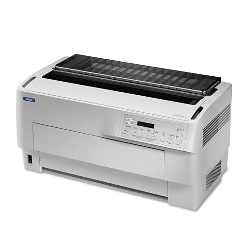 Ultra-fast print speeds of up to 1550 cps let you blaze through critical reports, multipart forms, labels, and more. Platen gap adjusts automatically according to the paper thickness, and auto jam-sensor eliminates wasting forms, so that all your printing needs are met with flexible capabilities. 400-million character print head life ensures a dependable print performance, day after day. 15-million-character ribbon cartridge ensures low cost printing and reduces the need for frequent user intervention. Convenient LCD display allows for easy printer configuration and menu navigation to simplify the integration process Durable 9-pin performer offers an MTBF rating of 20,000 Power On Hours for a longer life. Maximum Print Speed (Black): 1550 cps; B&W or Color Output: B&W; Printer Type: Dot Matrix; Model Name/Number: DFX-9000.