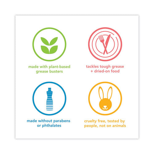 Eliminate unpleasant grease and stubborn, stuck-on food with the power of a plant-based dishwashing soap. Pump dispenser provides more squirt control with one-handed convenience. Pleasant scent leaves dishes smelling great.