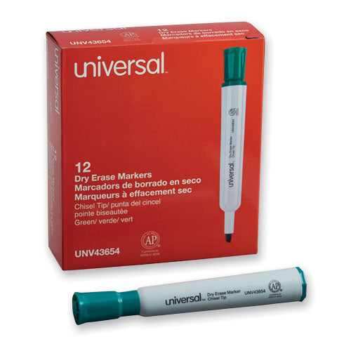 Rich, vibrant colors ensure that everyone can see what you're communicating. Smooth, skip-free lay down makes marking easy, keeping each line consistent and even. Instant-dry ink erases easily from all dry-erase surfaces: melamine, ceramic, glass, etc. Low-odor formula is ideal for classrooms, enclosed collaboration spaces and home offices. Marker Ink Type: Dry Erase; Marker Tip Type: Chisel; Marker Tip Size (text): Broad; Marker Color(s): Green.