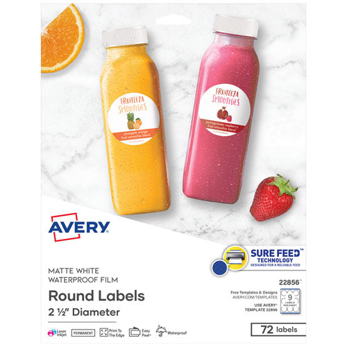 Durable White Id Labels W- Sure Feed, 2 1-2" Dia, White, 72-pk