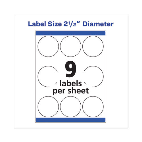 These labels let you take your branding message outdoors. They’re specially made of a sturdy polyester material that holds up to moisture, scuffing and tearing. Perfect for identifying contents of containers at outdoor events, refrigerated products, plants and more — just customize, peel and stick. Our print-to-the-edge feature lets you add a full-color background to make your label really pop. With a few quick steps you can easily personalize them with your logo, product information or QR code. Print-to-the-edge feature lets you add bright, bold colors and text all the way to the edge of the label. Compatible with both laser and inkjet printers. Shape: Round; Label Size - text: 2.5" dia.; Label Color(s): White; Color Family: White.