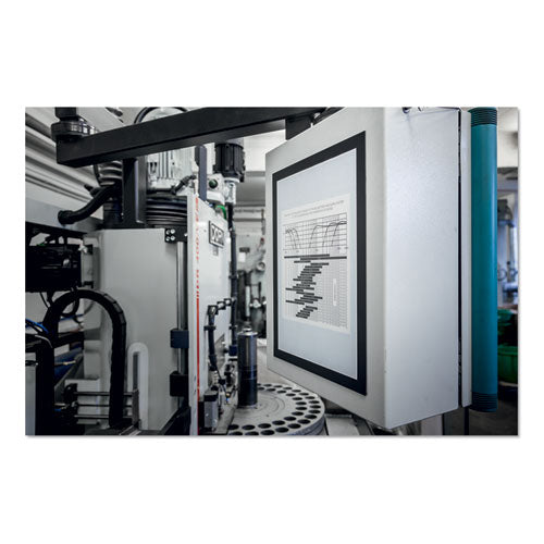 Magnetic infoframe displays documents on metallic surfaces in production area and offices, such as whiteboards, metal cabinets, racking and machinery. Four-sided frame works horizontally or vertically. Sturdy cover pulls back effortlessly for speedy insert updates. Anti-glare plastic. Frame Color: Black; Size: 9.5 x 12; Insert Size: 8.5 x 11; Material(s): PVC.