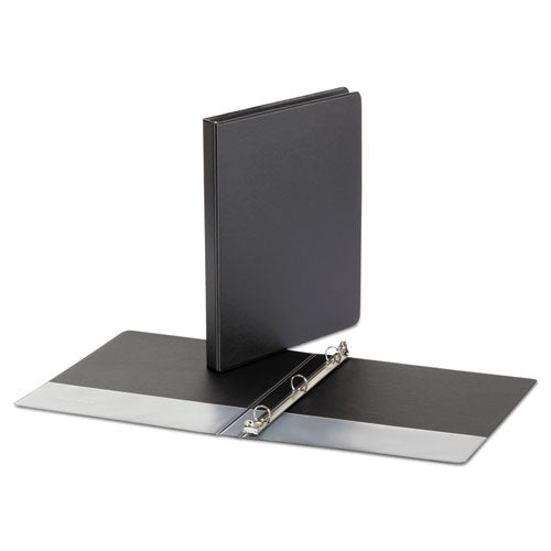 Basic, non-view, economical binder for light use. Binder features back-mounted, non-locking rings. Two inside pockets provide extra storage for loose documents. Poly material is non-stick, so inserts and pockets won't lift print. Binder Type: Ring; Binder Style: Non-View; Binder Size Capacity: 0.5"; Binder Sheet Capacity: 100.