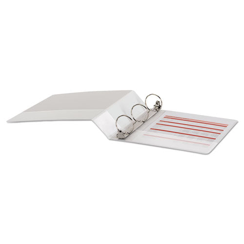Economical view binder for light use. Non-glare transparent plastic overlays on front cover back cover, and spine for easy customization. Binder features back-mounted rings for added convenience. Two inside pockets provide extra storage for loose documents. Poly material is non-stick. Inserts, pockets and cover won't lift print. Binder Type: Ring; Binder Style: View; Binder Size Capacity: 2"; Binder Sheet Capacity: 475.