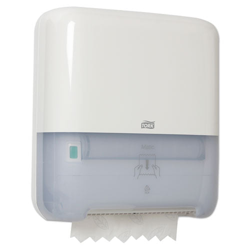 The Tork® Elevation® Matic Paper Towel Dispenser improves hygiene, reduces waste and helps save money with hands-free, controlled-consumption dispensing. Just one less thing to worry about. Reliable and durable, the Tork Matic dispenser eliminates cross-contamination and improves hygiene. One-towel-at-a-time dispensing reduces usage and waste, while saving money by controlling consumption. This high-capacity dispenser is ideal for busy washrooms. Mechanical hands-free dispensing produces a towel smoothly every time. No batteries needed; powered by your patrons. Contemporary design ensures easy and intuitive maintenance and easy to read level indicator makes refilling paper rolls quick and easy.