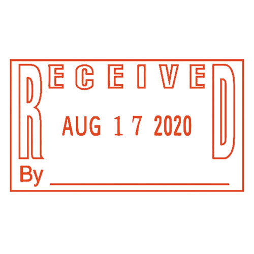 Designed to dramatically improve user experience. Top side display shows current date setting. Side adjustment knob makes date changes easy and clean. Compact ink cartridge is simple to change and lasts for thousands of impressions. Stamp Type: Message Dater; Message(s): DATE; RECEIVED; Ink Types: Self-Inking; Impression Width: 1".