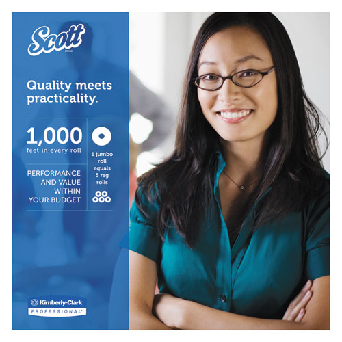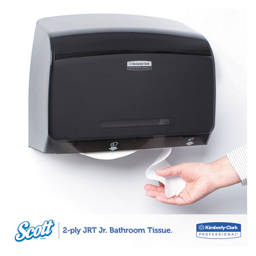 Scott® Essential JRT Bathroom Tissue is the reliable and practical choice. One roll of this high capacity tissue equals nearly 5 standard rolls. This system is ideal for those high traffic areas by helping reduce run-outs and re-fills. Meets EPA Standards for minimum post consumer waste content. 9" Diameter, Convenience Pack. Tissue Type: Toilet; Number of Plies: 2; Length: 1,000 ft; Width: 3.55".