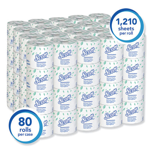 Scott Essential provides reliable balance of efficiency, performance and value. When you're looking for practical products for your business restroom, Scott Essential Bulk Toilet Paper Standard Roll is a smart choice. This recycled toilet tissue is the ideal blend of terrific performance and value. Each sheet is strong and absorbent, giving you a consistent, reliable experience for your bathroom visitors (even in high-traffic/commercial/ industrial areas). With 100% recycled fiber (RF) content, it meets EPA standards. Plus, the bulk rolls are individually wrapped (they're protected until you're ready to use them) and fit with most universal toilet paper dispensers. If practicality, reliability and value top your list of criteria for bathroom supplies, trust Scott Essential Standard Roll Bath Tissue! Tissue Type: Toilet; Number of Plies: 1; Number of Sheets: 1210 per roll; Length: 3.75".