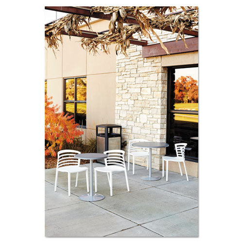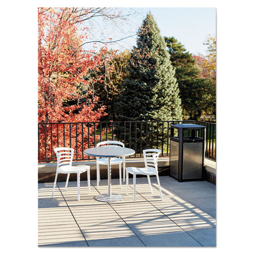 Attractive container helps manage waste and litter, indoors or out. Strong steel frame and decorative, galvanized steel panels provide the right in any first impression area. Four-sided opening makes it easy for pedestrians to drop their waste in passing. No assembly required and includes rigid plastic liner. Waste Receptacle Type: Indoor/Outdoor All-Purpose Waste Bin; Material(s): Steel; Application: Indoor/Outdoor All-Purpose Waste Disposal; Capacity (Volume): 38 gal.