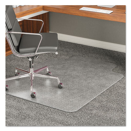 Sophisticated distinction for the demanding executive. High quality, heavy-weight protective vinyl chairmat engineered for exceptional performance. Extra-thick, intensive, all-day use chairmat for carpets over 1/2" thick. Smooth beveled edge for easy carpet to mat transition. Studded design secures mat from moving while protecting carpet from caster wear, spills and heavy traffic. Free and Clear® non-phthalate, non-cadmium formula promotes a healthy work environment while offering exceptional clarity and durability. Mat Type: Chair Mat; Application: Carpets; Width: 45"; Length: 53".