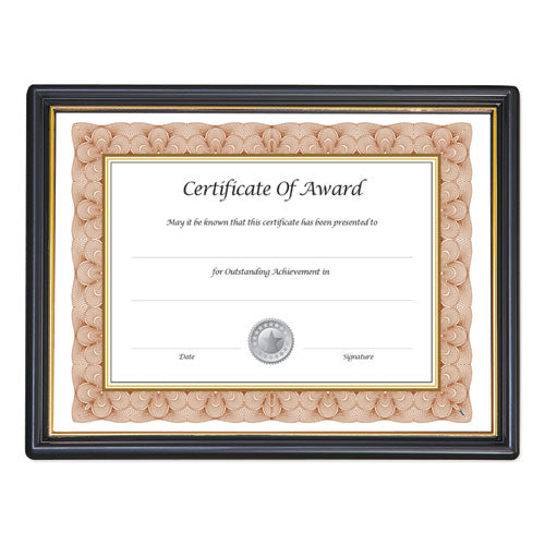 Ez Mount Document Frame W-trim Accent, Plastic Face, 8.5 X 11, Black-gold, 18-ct