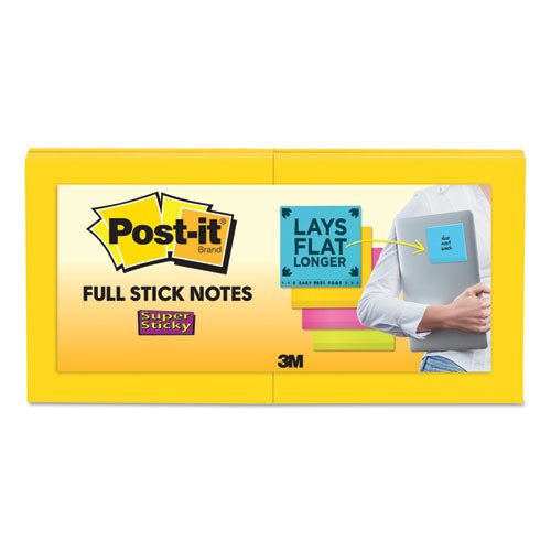 Post-it® Notes Super Sticky Full Stick Notes provide versatility and reliability for new uses in new places. Pad sticks to your notebook so notes are always within reach. Great for phone numbers, reminders and short to-do lists. Fantastic for work or home—they stick almost anywhere. Electric Yellow—Electric colors help you draw attention to your sizzling details. Pad Type: Super-Sticky; Sheet Size (W x H): 3" x 3"; Number of Sheets per Pad: 25; Ruling: Plain.